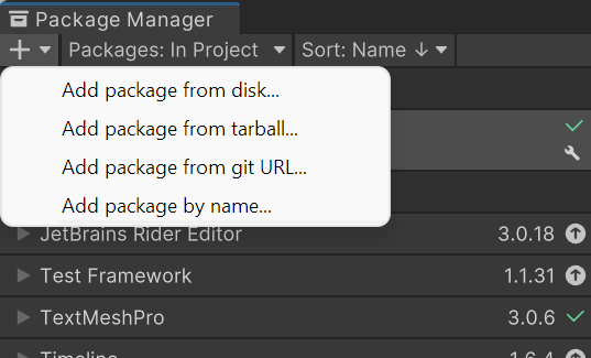 First and foremost you need to add the package to Unity. In Unity navigate to Windows > Package Manager. Then in the top left click the + symbol, and select Add package from git URL.